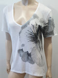 JOSEPH White Grey Cotton Floral Print V Neck Short Sleeve T-Shirt Tee Top L