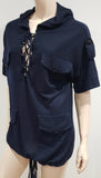 3.1 PHILLIP LIM Navy Blue Cashmere Tie Neck Hooded Short Length Jumper Sweater M