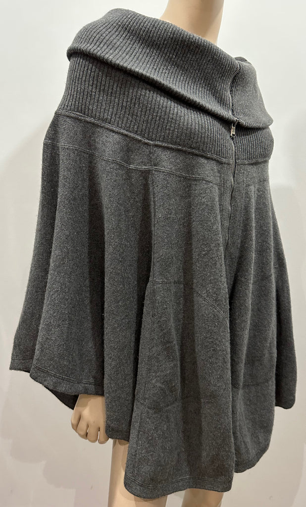 ALESSANDRO DELL' ACQUA Charcoal Grey Wool Blend Zip Fastened Cardigan Poncho