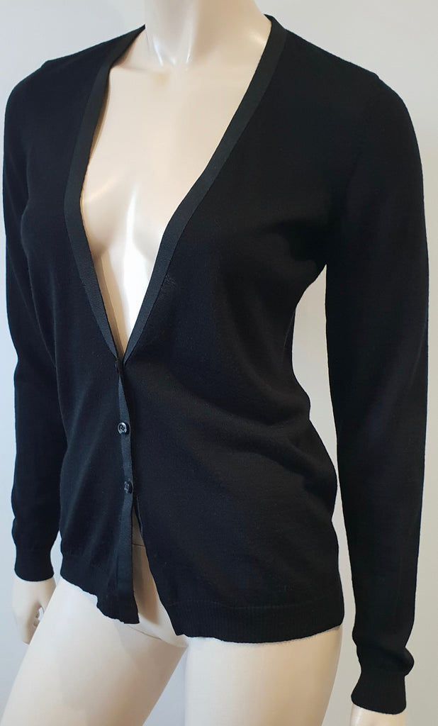 ANNE VALERIE HASH POUR CARTIER Black Wool Ribbon Trim Long Sleeve Cardigan M