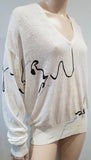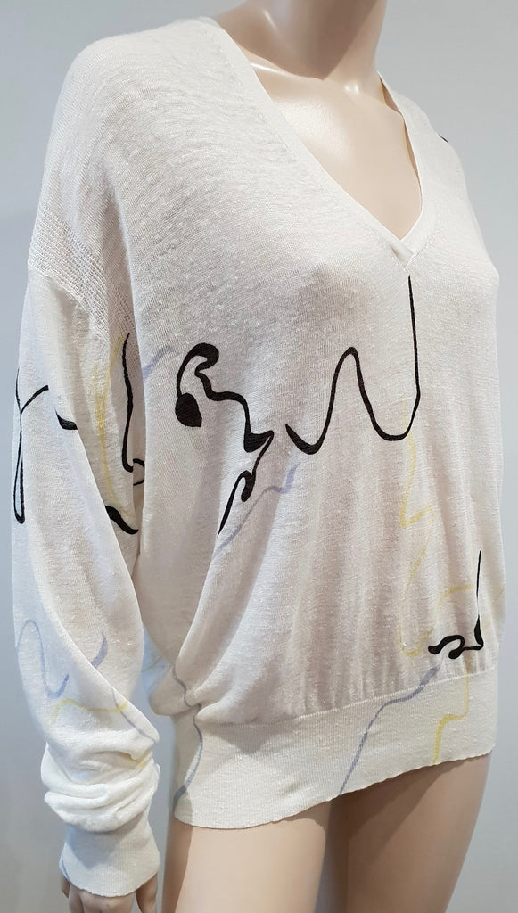 BIMBA Y LOLA Cream 100% Linen Multi Colour Pattern Fine Knit Jumper Sweater Top