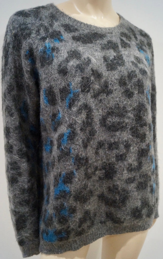 CLAUDIE PIERLOT Charcoal Grey Blue Mohair Blend Leopard Pattern Jumper Sweater 3