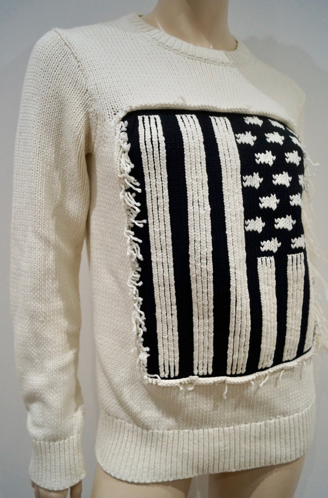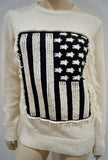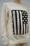 COACH NEW YORK Cream Cotton Blend Knit Flag Pattern Front Jumper Sweater Top S