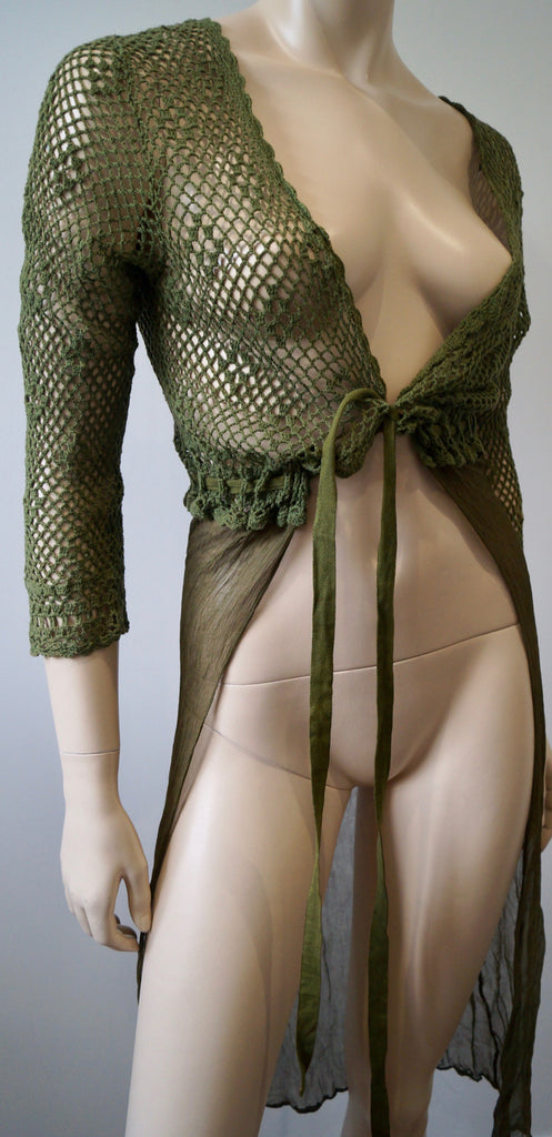 DAY BIRGER ET MIKKELSEN Khaki Green 100% Silk Loose Knitwear Cardigan Top M