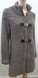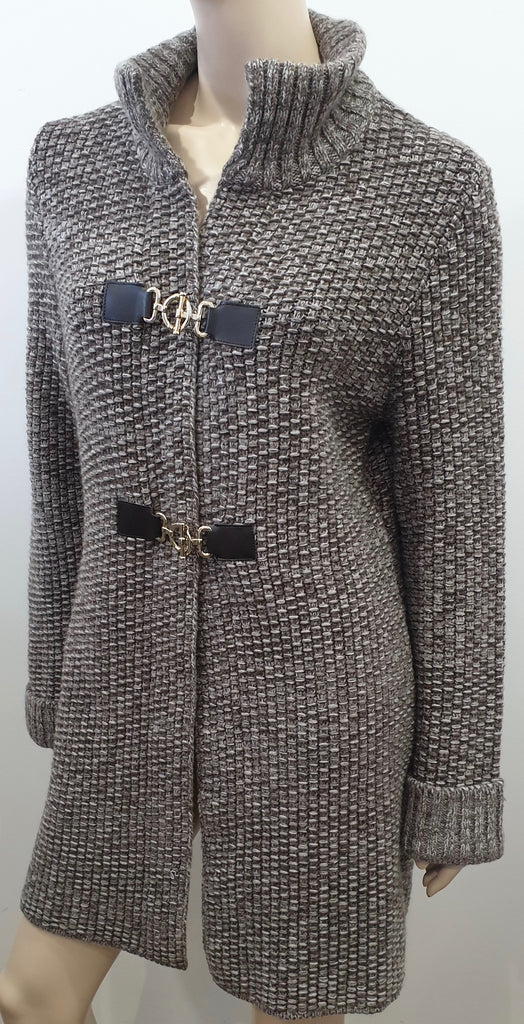 DORIANI CASHMERE Brown & Cream Chunky Knit Funnel Neck Long Cardigan 46 UK14