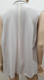 DUFFY Pale Grey & Cream Trim Cashmere Open Front Sleeveless Knitwear Cardigan L