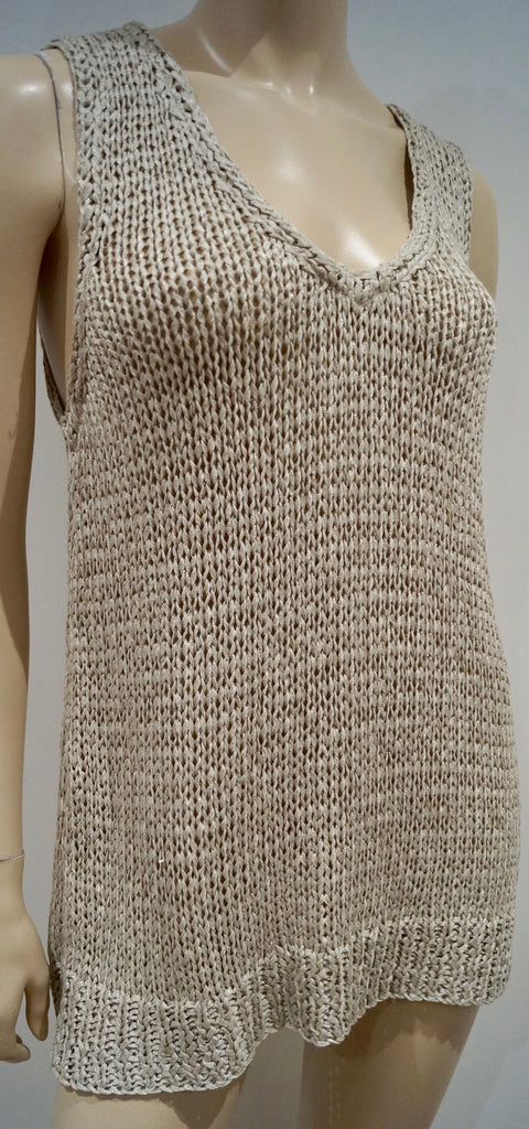 EILEEN FISHER Beige Chunky Knitwear V Neck Sleeveless Long Length Tank Vest Top