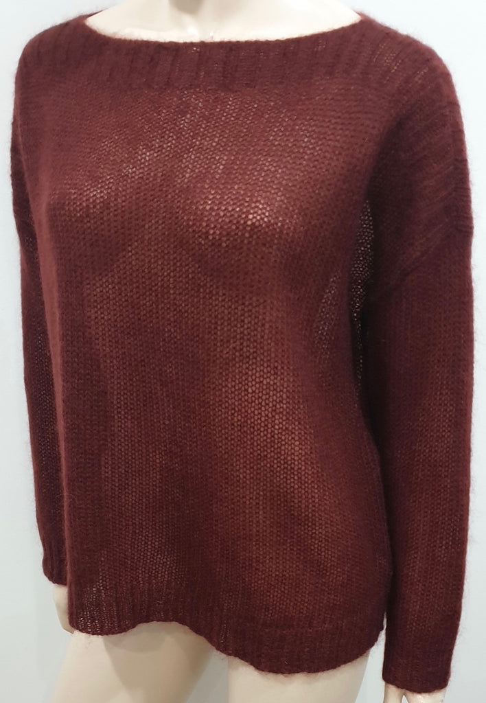 EILEEN FISHER Burgundy Mohair Blend Scoop Neck Loose Knit Jumper Sweater Top M