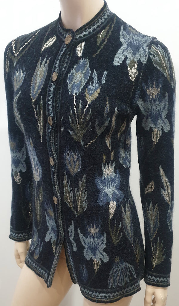 EMANUEL UNGARO PARALLELE Black & Multi Colour Floral Knitwear Cardigan Top S/M