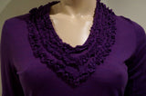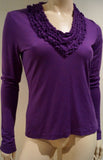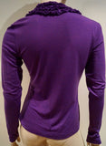 ETRO MILANO Purple Wool Blend Ruffled V Neck Long Sleeve Sweater Top 44 UK12