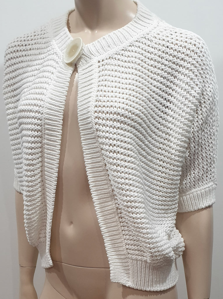 FABIANA FILIPPI White Cotton Chunky Loose Knit Short Batwing Sleeve Cardigan XL