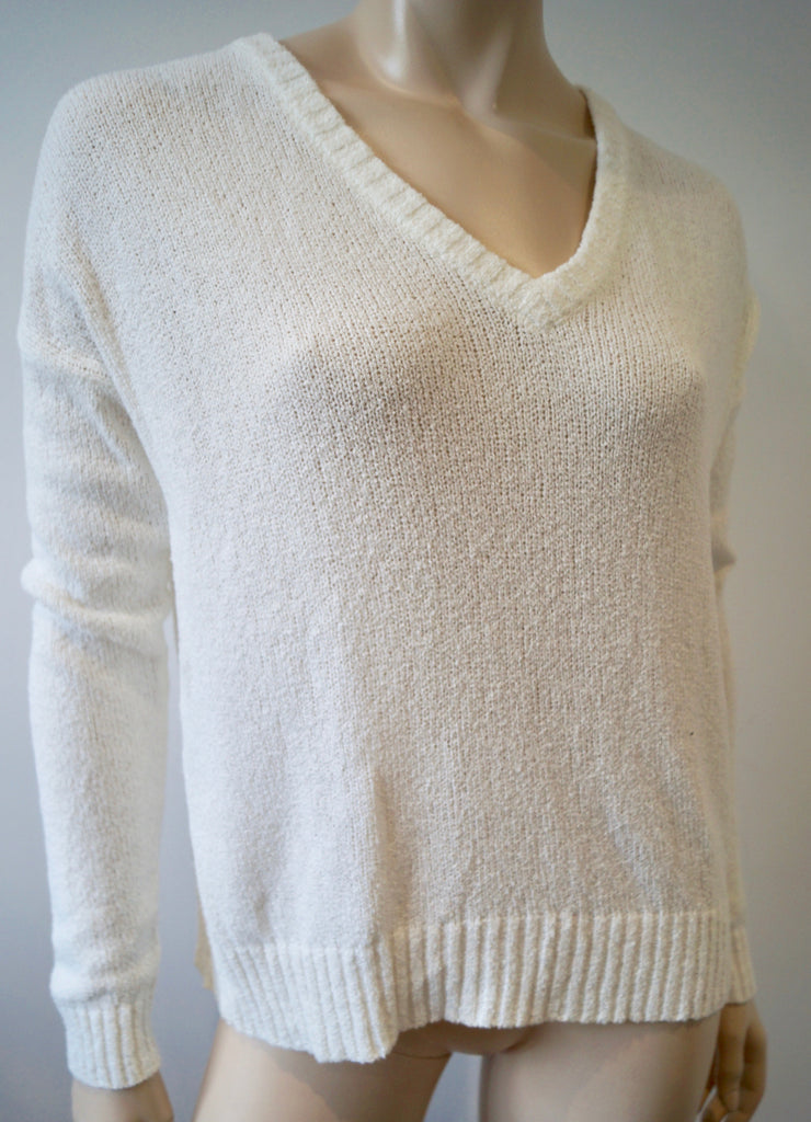 FEEL THE PIECE TERRE JACOBS Winter White V Neck Texture Knit Jumper Sweater Top