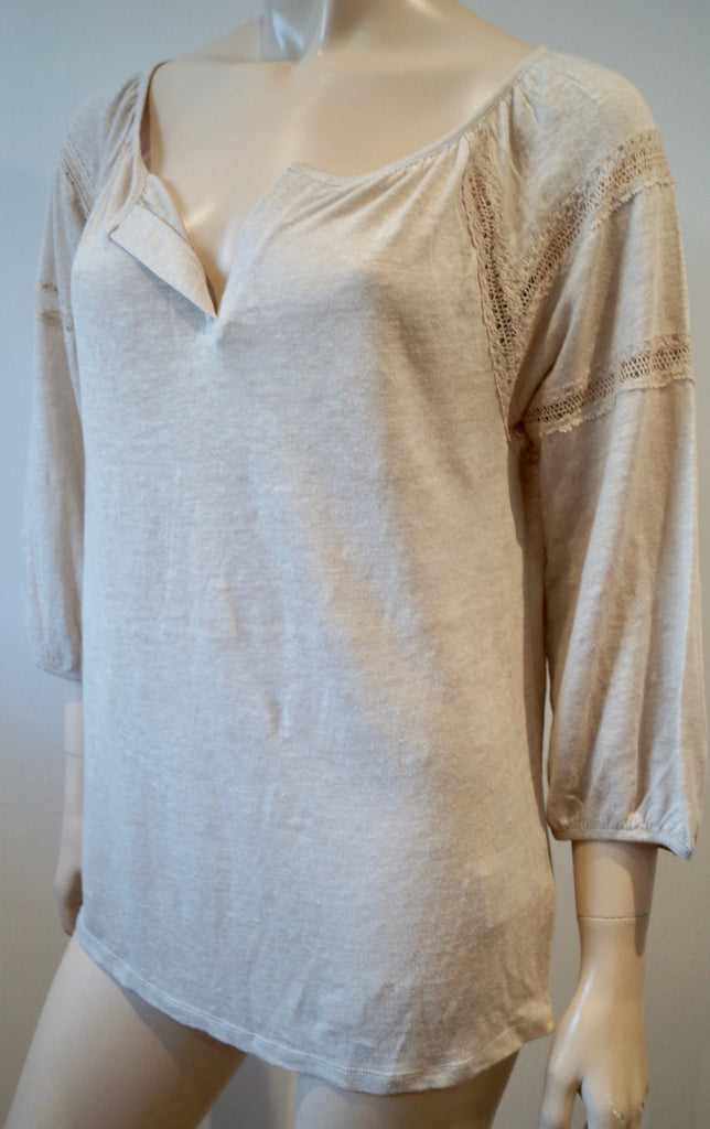 GERARD DAREL Beige Linen Fine Knit Cream Lace Detail 3/4 Sleeve Jumper Sweater 2