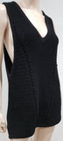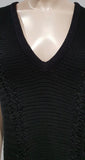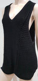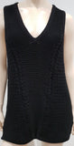 HELMUT LANG Black Linen Blend V Neck Sleeveless Chunky Knit Vest Jumper Top Sz:P