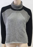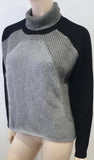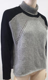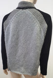 HELMUT LANG Grey & Black Chunky Rib Polo Neck Long Sleeve Jumper Sweater Top S