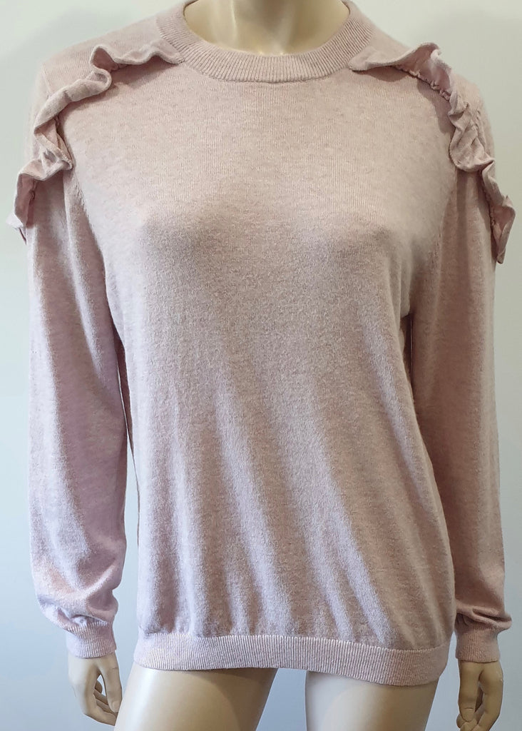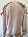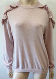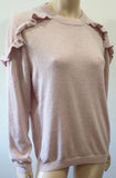 JEFF KNITWEAR Pink Cotton Cashmere Blend Ruffle Trim Jumper Sweater Top UK12