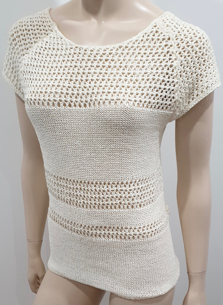 KRISTIANA TI Cream Cotton Blend Open Tie Back Knitwear Jumper Sweater Top UK10