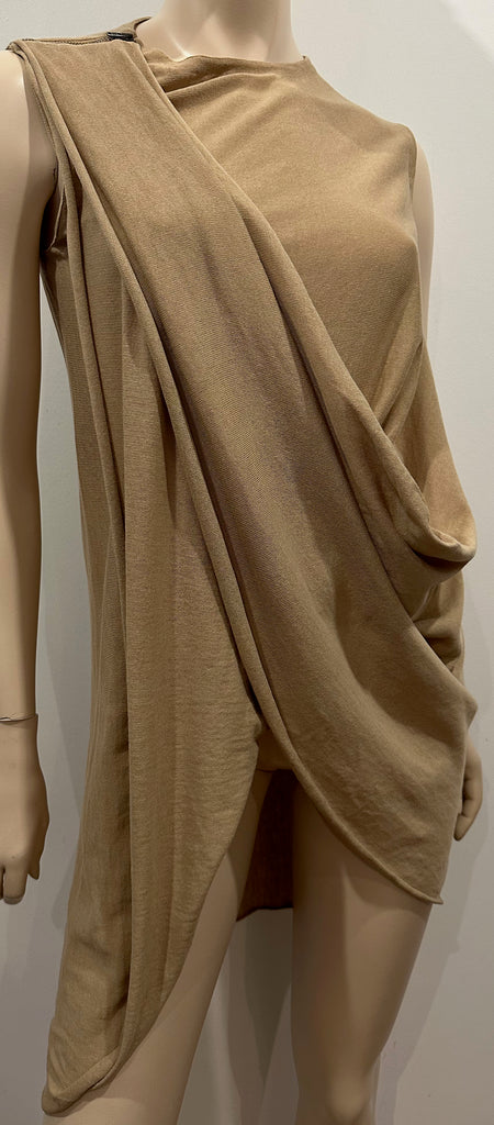 MAISON MARTIN MARGIELA Caramel Brown Sleeveless Draped Knit Jumper Sweater M