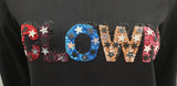 Multi colour CLOWN sequin detail to front