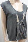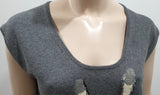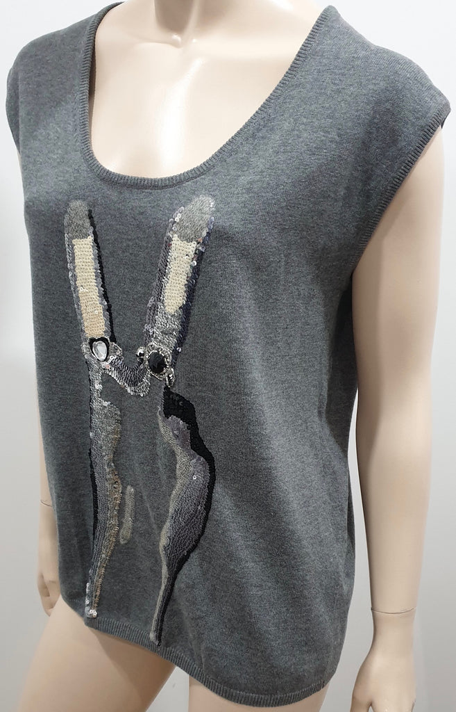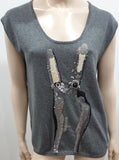 MARKUS LUPFER Grey Scoop Neck Sequin & Jewelled Knitwear Jumper Sweater Top S