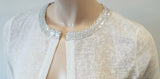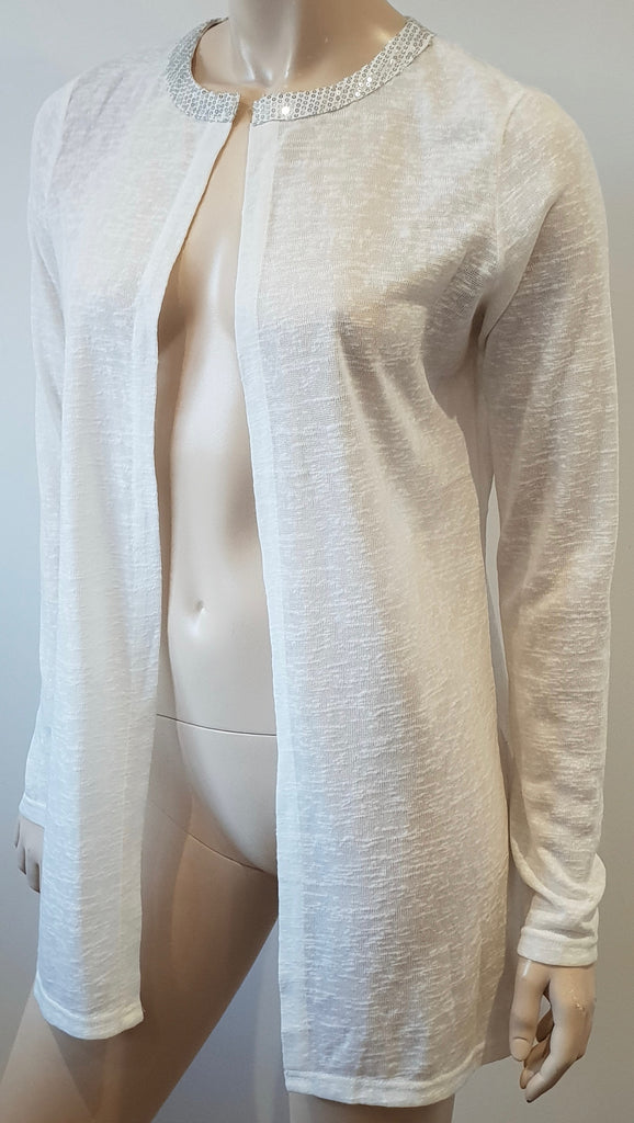 MISMASH White Semi Sheer Silver Sequin Neck Open Front Long Sleeve Cardigan Top