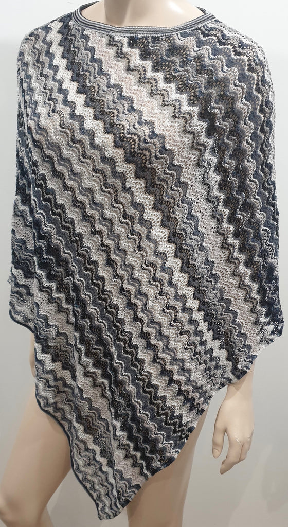 MISSONI Orange Label Grey White Silver Metallic Fine Knit Stripe Poncho Cape Top
