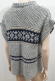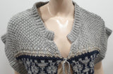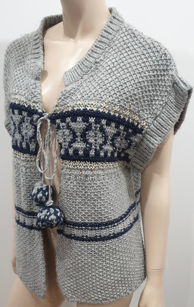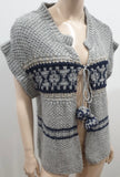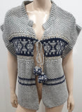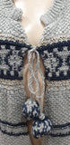 PAUL & JOE Grey Silver Black Wool Blend Pom Pom Fasten Chunky Knitwear Cardigan