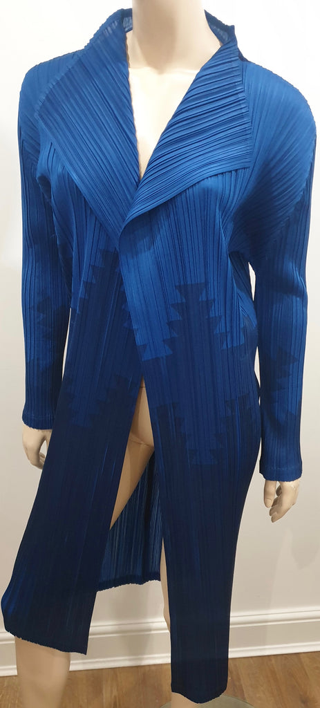 PLEATS PLEASE ISSEY MIYAKE Royal Blue Pleated Open Front Cardigan Jacket Sz:4