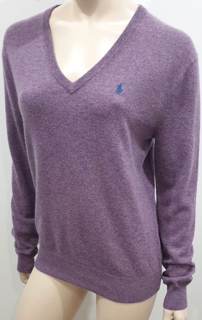 POLO RALPH LAUREN Lilac Purple 100% Cashmere V Neck Jumper Sweater Top M