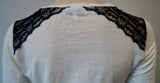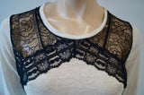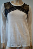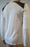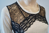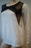 SANDRO White Linen Fine Knit Black Floral Lace Trim Long Sleeve Jumper Sweater L