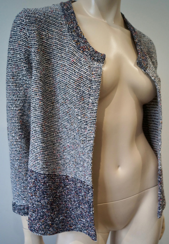 STEFAN GREEN Navy White Pink Cotton Blend Textured Knit Open Front Cardigan 3; L