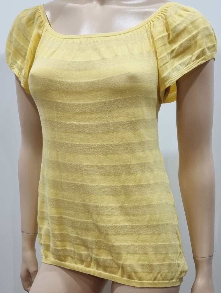 TARA JARMON Pale Yellow Cotton Blend Fine Knit Short Sleeve Jumper Sweater Top S