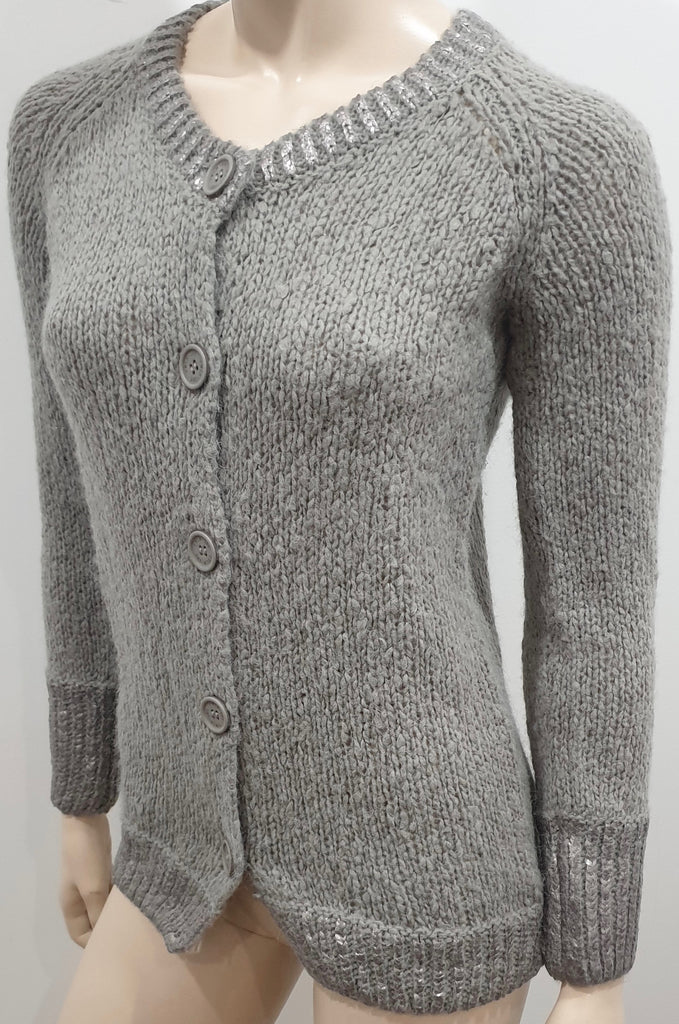 TWIN SET SIMON BARBIERI Grey Chunky Knit Silver Metallic Heart Cardigan 12 BNWT