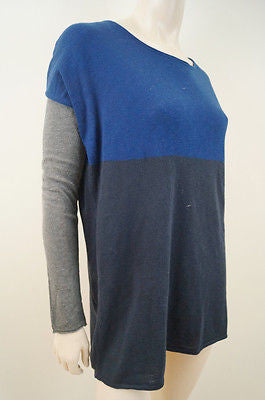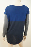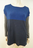 VINCE Blue & Grey Cotton Knit Block Colour Long Sleeve Jumper Sweater Top Sz: S