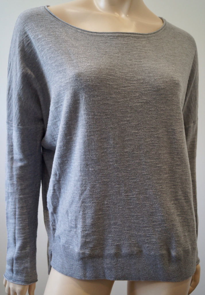 VINCE Pale Grey 100% Cotton Scoop Neck Long Sleeve Casual Jumper Sweater Top M