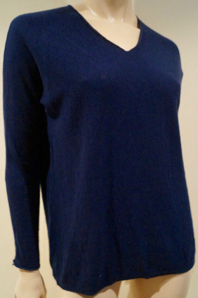 VINCE Women's Navy Blue 100% Cotton V Neck Long Sleeve Sweater Jumper Top XS