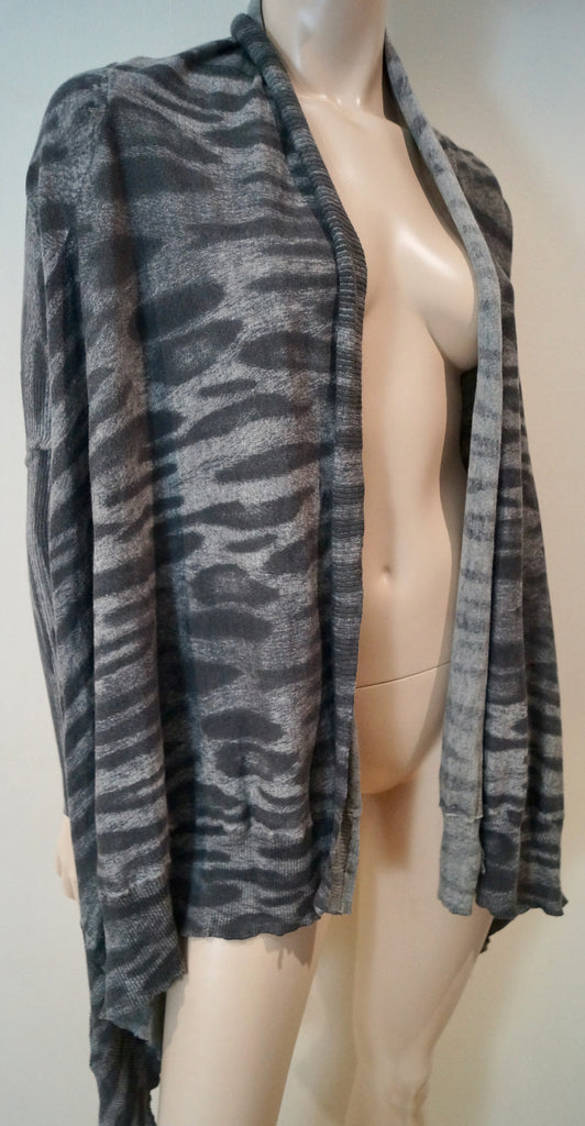 YIGAL AZZOUEL Grey & Charcoal Cotton Animal Stripe Print Open Front Cardigan M