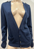 ZADIG & VOLTAIRE Navy Blue 100% Merino Wool V Neck Long Sleeve Knitwear Cardigan