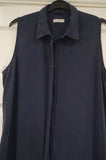 EQUIPMENT FEMME Navy Blue Silk Collared Button Front Sleeveless Romper Playsuit