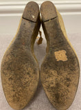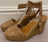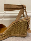 LANVIN Beige Grosgrain Ribbon Fabric Front Tie Ankle Espadrille Wedges EU39 UK6