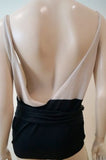 LANVIN ETE 2006 Beige & Black 100% Silk Scoop Neck Sleeveless Belt Vest Top Sz:L