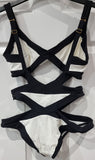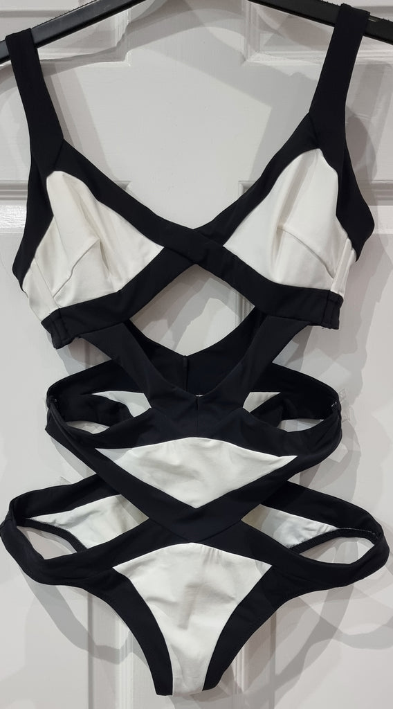 AGENT PROVOCATEUR Black White Bandage Strap Cut Out Swimsuit Costume UK10 3