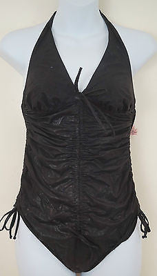 AGENT PROVOCATEUR Swimwear Black Sparkle Ruched Halter Neck Swimsuit Costume SzM