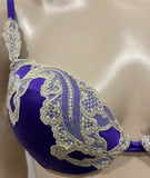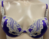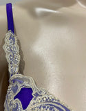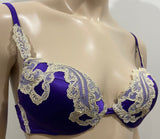 COTTON CLUB Purple Silk Blend Cream Lace Underwired Balconette Bra 36B BNWT