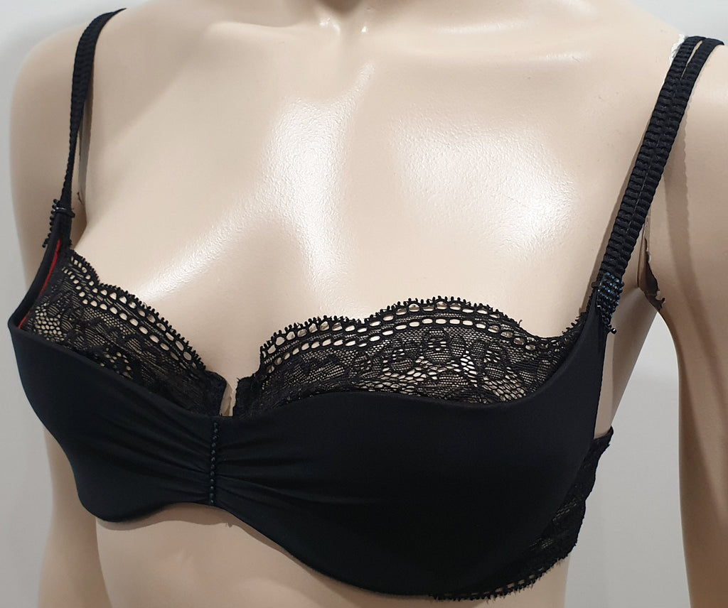 MAISON LEJABY PARIS Black Lace Delicate Crystal Detail Underwire Lingerie Bra 32D