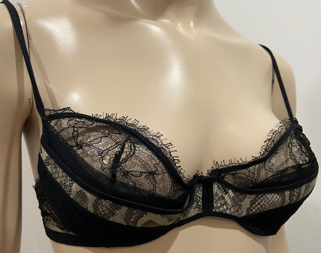 RCRESCENTINI PRIVATE COLLECTION COTTON CLUB Black Lace Animal Print Bra 36 B