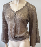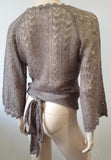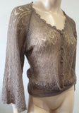 MAJE Beige Brown Mohair Blend Loose Knit Tie Waist 3/4 Flare Sleeve Cardigan