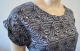 MAJE Black Blue White REPTILE Print Round Neckline Short Sleeve Jersey Dress 2