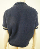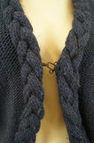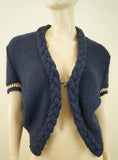 MAJE Navy Blue & Gold Wool / Alpaca Blend Plaited Neckline Cardigan Top Sz:M