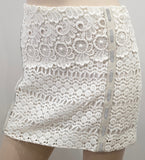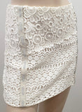 • MAJE White Embroidery Cream & Grey Leather Trim Short Mini Pencil Skirt FR34 UK6